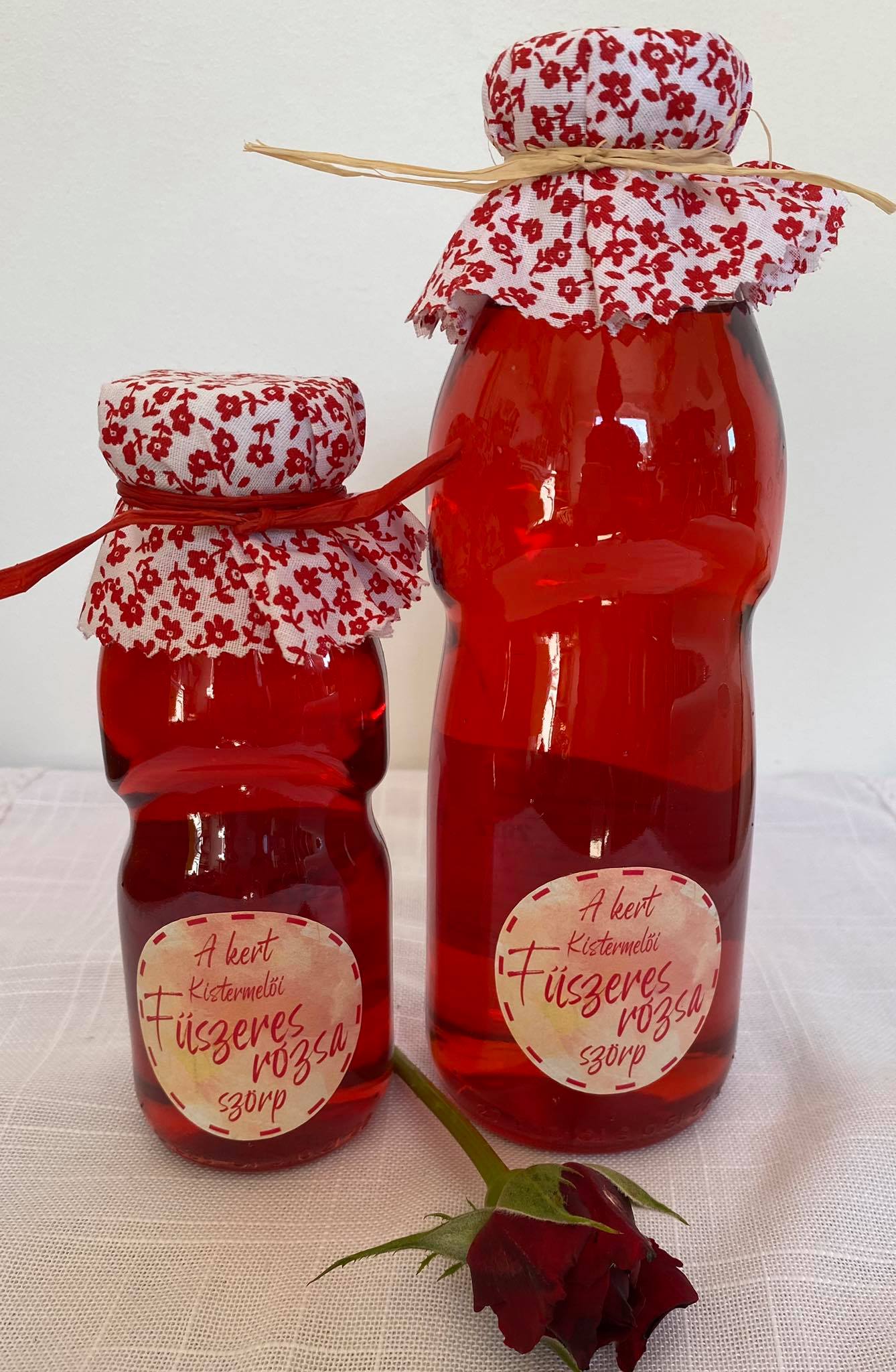 Kertünkben termett rózsából, hagyományos hőkezelési eljárással készült szörp. A hozzáadott szegfűszeg harmónikus ízhatást eredményez. Tartósítószert és színezéket nem tartalmaz.